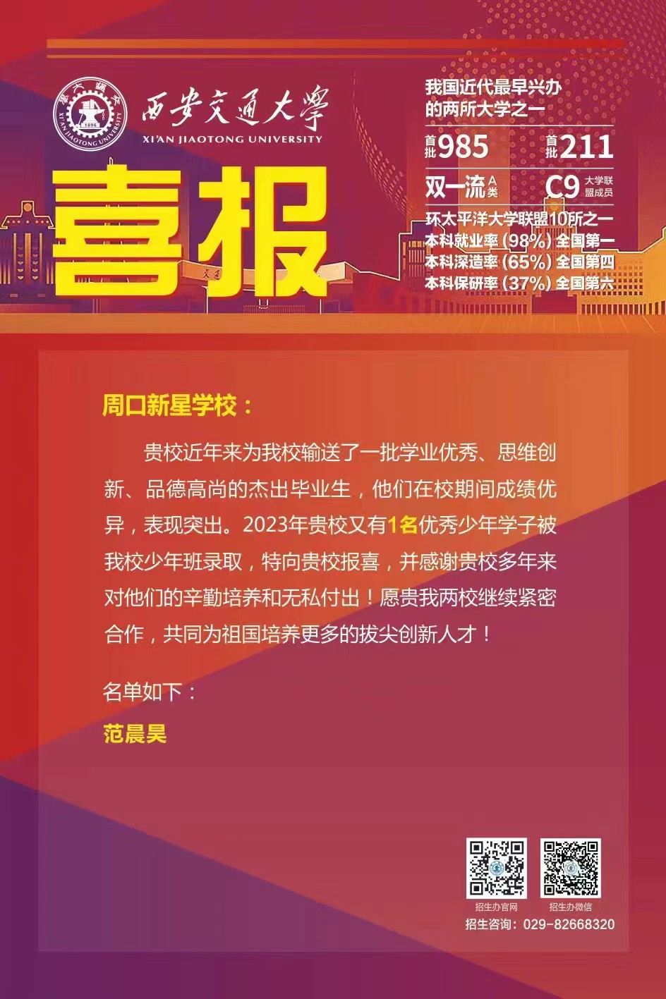 周口新星学校是西安交通大学优质生源基地。